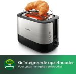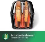 توستر HD2637 دارای شیار عریضتر نسبت به مدلهای معمول است تا بتوانید انواع نان ضخیم، نانهای سنتی، نان تست و حتی نانهای دستساز را به راحتی داخل آن قرار دهید.